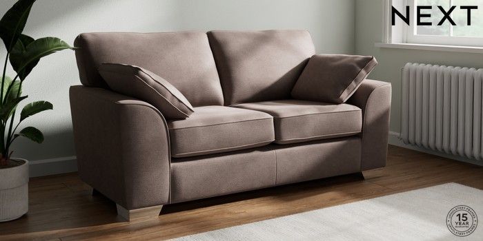 7.2.10 Stamford 2 Seater Sofa Luxe Chenille Mink Brown Large Square Angle - Chrome Metal | Made Click here to use our website with more accessibility support, for example screen readers