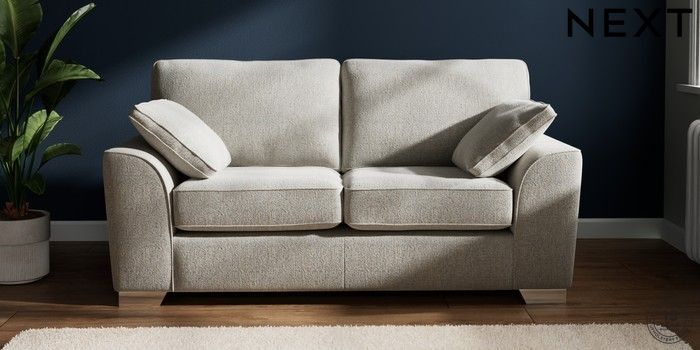 7.2.10 Stamford 2 Seater Sofa Multi Weave Light Blue Large Square Angle - Chrome Metal | Made Click here to use our website with more accessibility support, for example screen readers