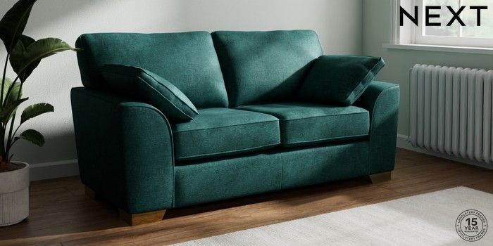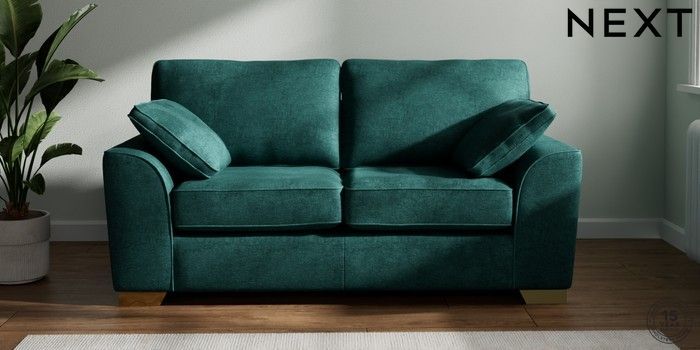 7.2.10 Stamford 2 Seater Sofa Plush Chenille Dark Teal Green Large Square Angle - Brushed Brass | Made Click here to use our website with more accessibility support, for example screen readers