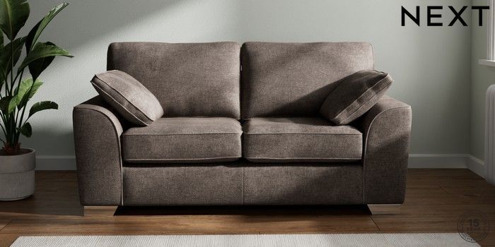 7.2.10 Stamford 2 Seater Sofa Plush Chenille Mink Brown Large Square Angle - Chrome Metal | Made Click here to use our website with more accessibility support, for example screen readers