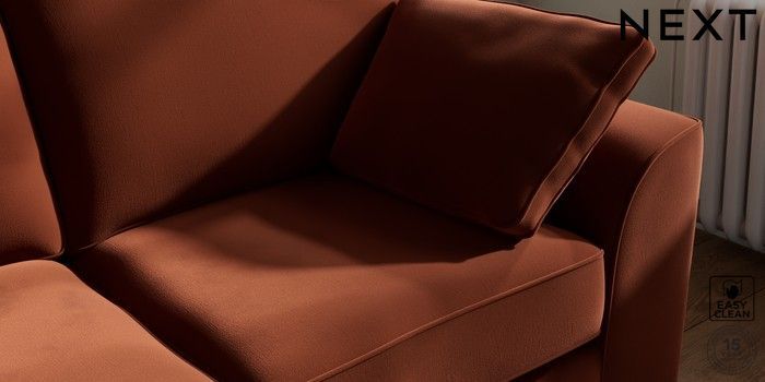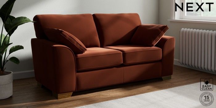 7.2.10 Stamford 2 Seater Sofa Plush Velvet Easy Clean Ginger Orange Large Square Angle - Brushed Brass | Made Click here to use our website with more accessibility support, for example screen readers