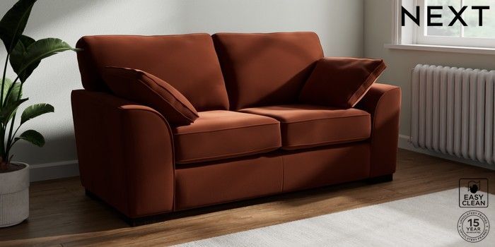 7.2.10 Stamford 2 Seater Sofa Plush Velvet Easy Clean Ginger Orange Large Square Angle - Dark | Made Click here to use our website with more accessibility support, for example screen readers