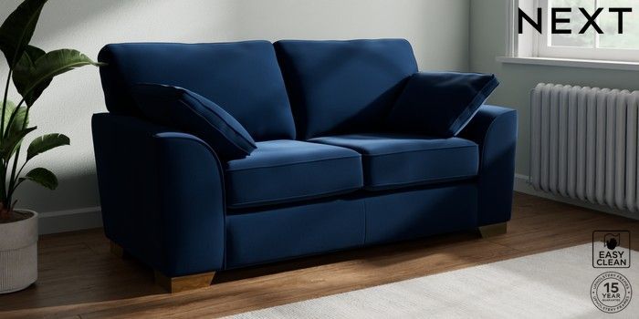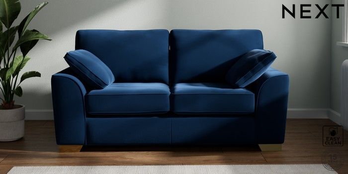 7.2.10 Stamford 2 Seater Sofa Plush Velvet Easy Clean Navy Blue Large Square Angle - Brushed Brass | Made Click here to use our website with more accessibility support, for example screen readers