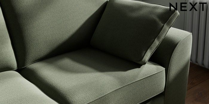 7.2.10 Stamford 2 Seater Sofa Relaxed Linen Look Dark Green Large Square Angle - Brushed Brass | Made Click here to use our website with more accessibility support, for example screen readers