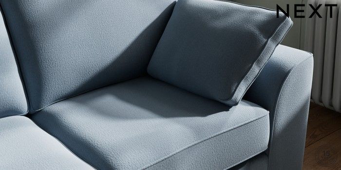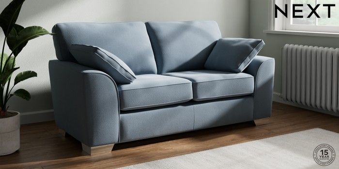 7.2.10 Stamford 2 Seater Sofa Relaxed Linen Look Mid Blue Large Square Angle - Chrome Metal | Made Click here to use our website with more accessibility support, for example screen readers