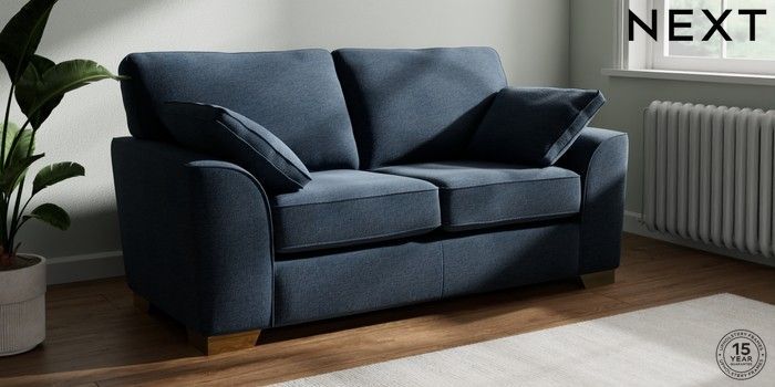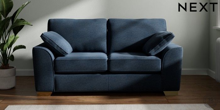 7.2.10 Stamford 2 Seater Sofa Ripple Chenille Dark Blue Large Square Angle - Brushed Brass | Made Click here to use our website with more accessibility support, for example screen readers