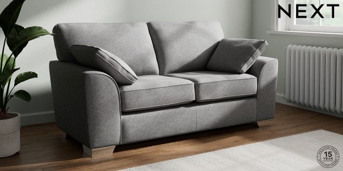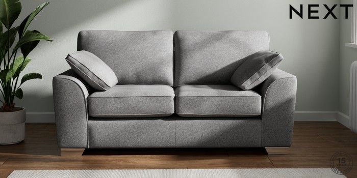 7.2.10 Stamford 2 Seater Sofa Studio Chenille Mid Grey Large Square Angle - Chrome Metal | Made Click here to use our website with more accessibility support, for example screen readers