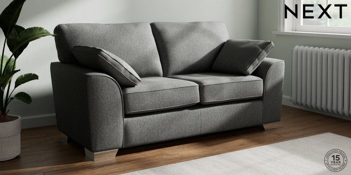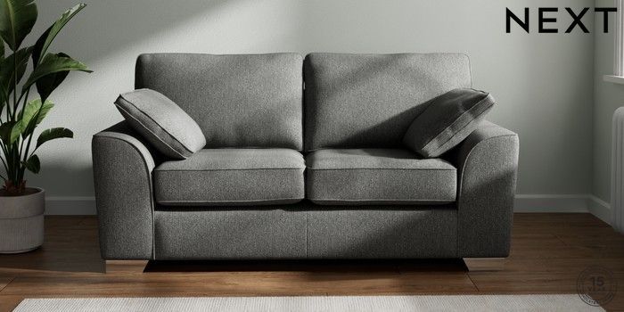 7.2.10 Stamford 2 Seater Sofa Tweedy Chenille Dark Grey Large Square Angle - Chrome Metal | Made Click here to use our website with more accessibility support, for example screen readers