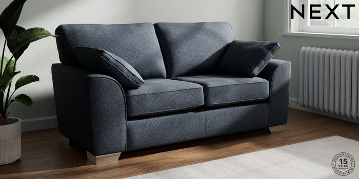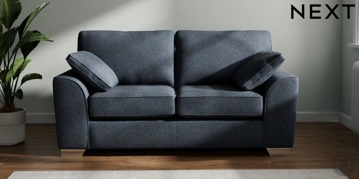 7.2.10 Stamford 2 Seater Sofa Tweedy Chenille Navy Blue Large Square Angle - Chrome Metal | Made Click here to use our website with more accessibility support, for example screen readers