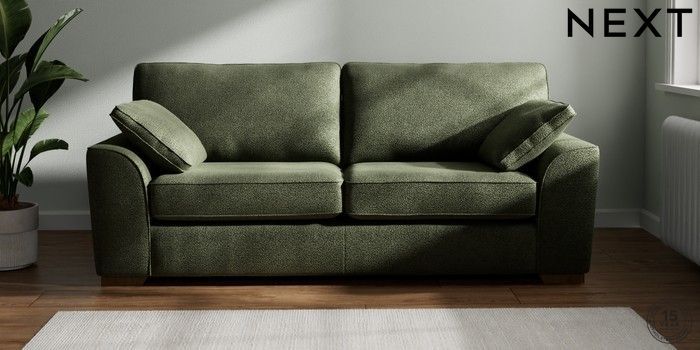 7.2.10 Stamford 3 Seater Sofa Boucle Chenille Dark Moss Green Large Square Angle - Mid | Made Click here to use our website with more accessibility support, for example screen readers