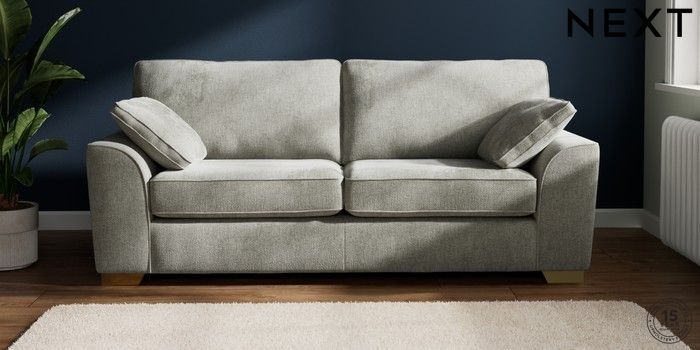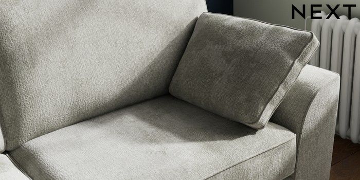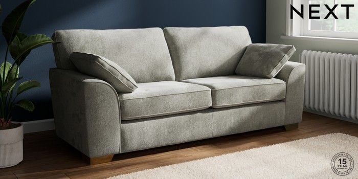 7.2.10 Stamford 3 Seater Sofa Chunky Chenille Light Grey Large Square Angle - Brushed Brass | Made Click here to use our website with more accessibility support, for example screen readers