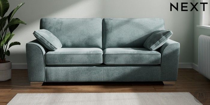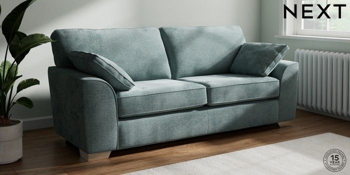 7.2.10 Stamford 3 Seater Sofa Chunky Chenille Light Teal Green Large Square Angle - Chrome Metal | Made Click here to use our website with more accessibility support, for example screen readers