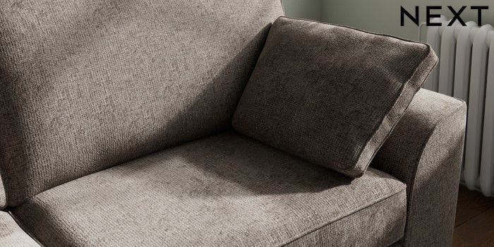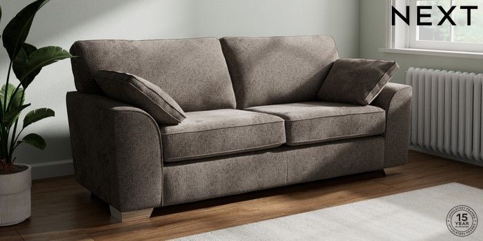 7.2.10 Stamford 3 Seater Sofa Chunky Chenille Mink Brown Large Square Angle - Chrome Metal | Made Click here to use our website with more accessibility support, for example screen readers