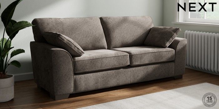 7.2.10 Stamford 3 Seater Sofa Chunky Chenille Mink Brown Large Square Angle - Gunmetal | Made Click here to use our website with more accessibility support, for example screen readers