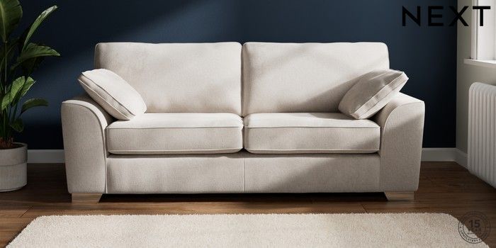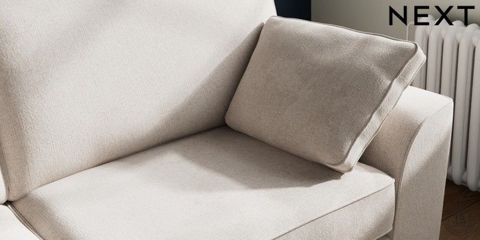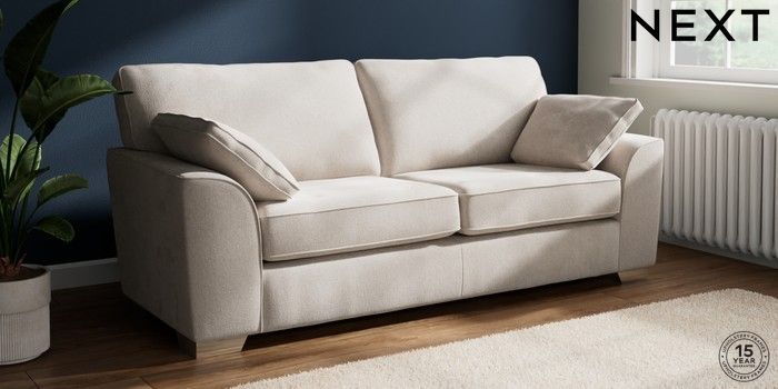 7.2.10 Stamford 3 Seater Sofa Chunky Chenille Oyster Large Square Angle - Chrome Metal | Made Click here to use our website with more accessibility support, for example screen readers