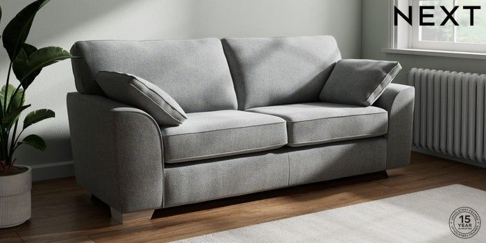 7.2.10 Stamford 3 Seater Sofa Chunky Marl Mid Grey Large Square Angle - Chrome Metal | Made Click here to use our website with more accessibility support, for example screen readers