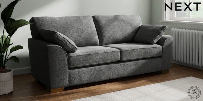 7.2.10 Stamford 3 Seater Sofa Chunky Texture Dark Grey Large Square Angle - Brushed Brass | Made Click here to use our website with more accessibility support, for example screen readers