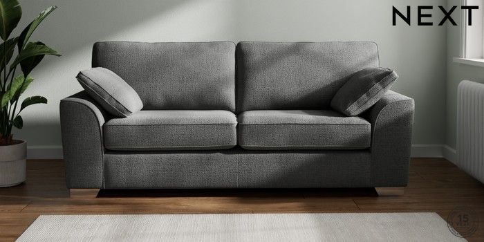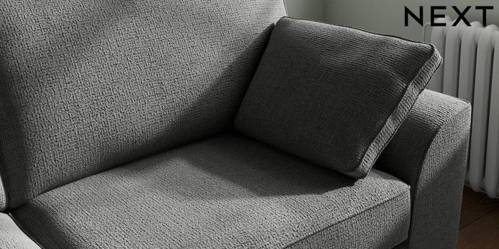 7.2.10 Stamford 3 Seater Sofa Chunky Texture Dark Grey Large Square Angle - Chrome Metal | Made Click here to use our website with more accessibility support, for example screen readers