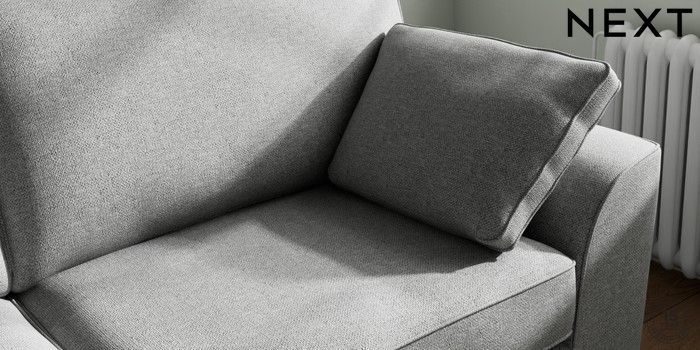 7.2.10 Stamford 3 Seater Sofa Chunky Weave Mid Grey Large Square Angle - Chrome Metal | Made Click here to use our website with more accessibility support, for example screen readers