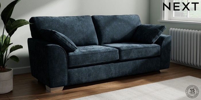 7.2.10 Stamford 3 Seater Sofa Distressed Velour Midnight Blue Large Square Angle - Chrome Metal | Made Click here to use our website with more accessibility support, for example screen readers