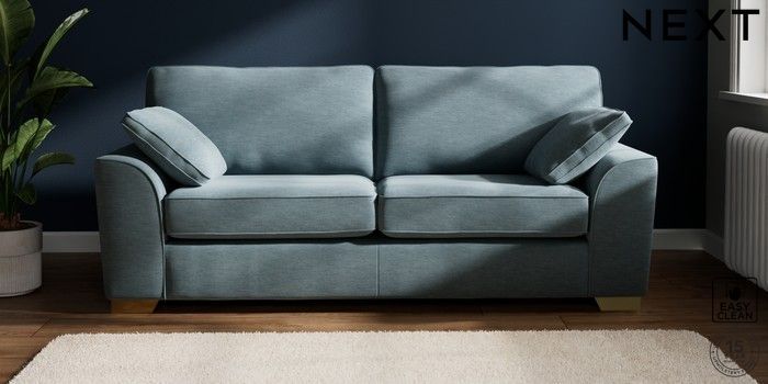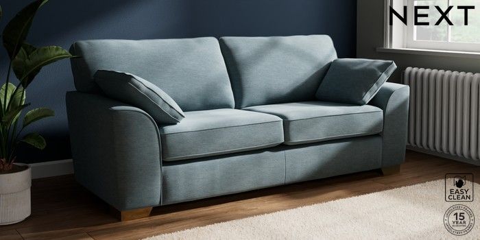 7.2.10 Stamford 3 Seater Sofa Fine Chenille Easy Clean Mid Blue Large Square Angle - Brushed Brass | Made Click here to use our website with more accessibility support, for example screen readers