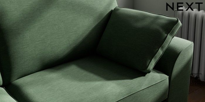 7.2.10 Stamford 3 Seater Sofa Fine Chenille Easy Clean Mid Khaki Green Large Square Angle - Brushed Brass | Made Click here to use our website with more accessibility support, for example screen readers