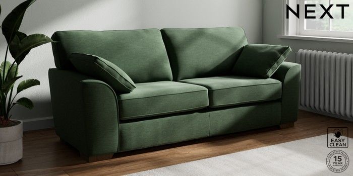 7.2.10 Stamford 3 Seater Sofa Fine Chenille Easy Clean Mid Khaki Green Large Square Angle - Mid | Made Click here to use our website with more accessibility support, for example screen readers