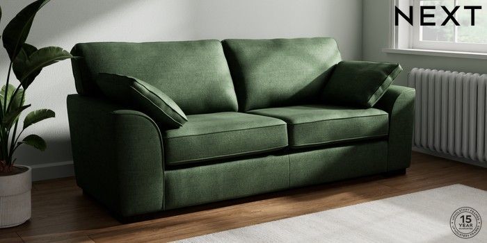 7.2.10 Stamford 3 Seater Sofa Luxe Chenille Dark Green Large Square Angle - Dark | Made Click here to use our website with more accessibility support, for example screen readers