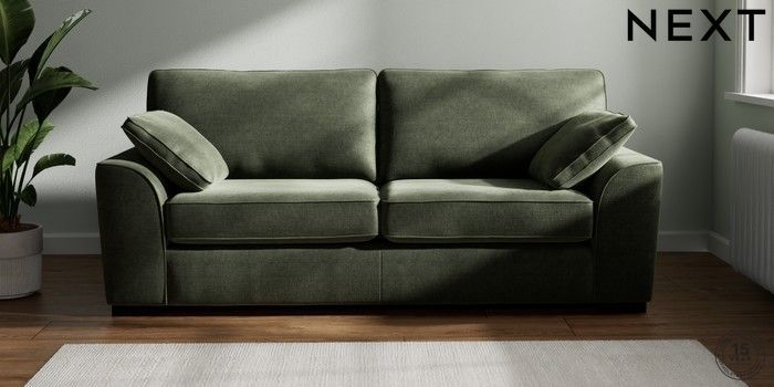 7.2.10 Stamford 3 Seater Sofa Luxe Chenille Mid Green Large Square Angle - Dark | Made Click here to use our website with more accessibility support, for example screen readers