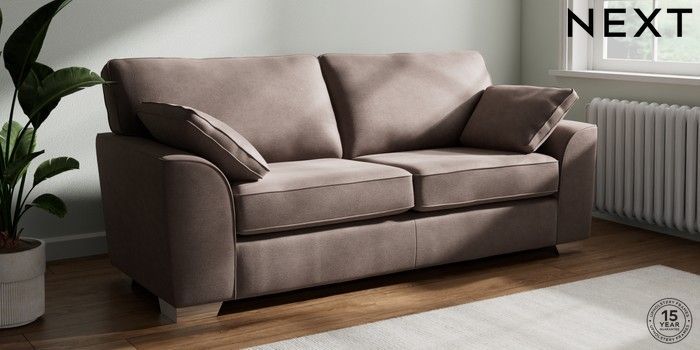 7.2.10 Stamford 3 Seater Sofa Luxe Chenille Mink Brown Large Square Angle - Chrome Metal | Made Click here to use our website with more accessibility support, for example screen readers