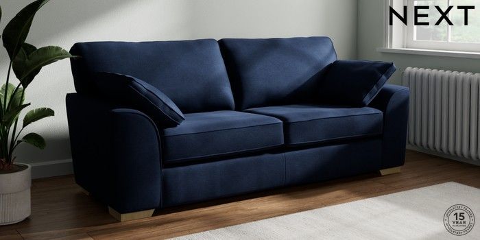 7.2.10 Stamford 3 Seater Sofa Luxe Chenille Navy Blue Large Square Angle - Light | Made Click here to use our website with more accessibility support, for example screen readers