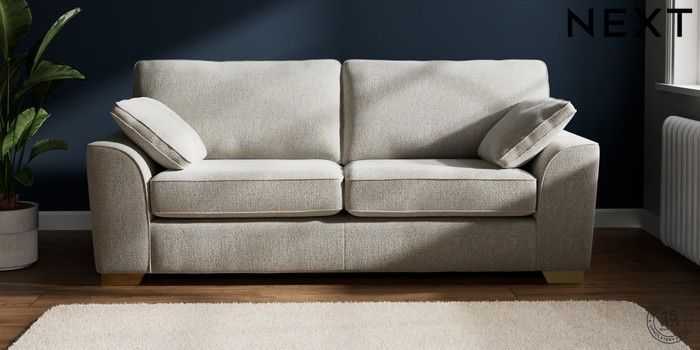 7.2.10 Stamford 3 Seater Sofa Multi Weave Light Blue Large Square Angle - Brushed Brass | Made Click here to use our website with more accessibility support, for example screen readers