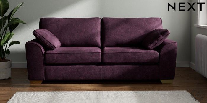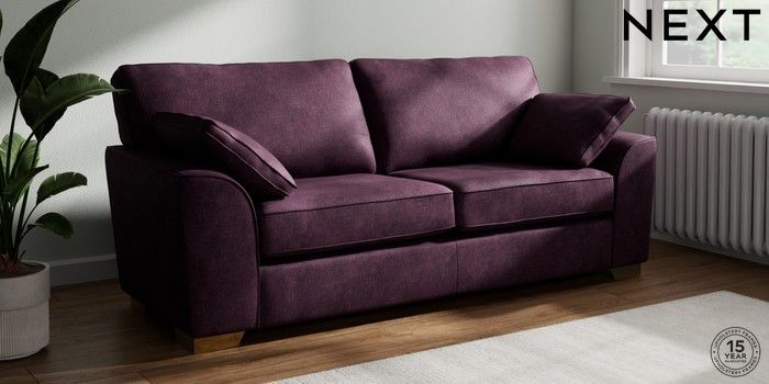 7.2.10 Stamford 3 Seater Sofa Plush Chenille Dark Plum Purple Large Square Angle - Brushed Brass | Made Click here to use our website with more accessibility support, for example screen readers