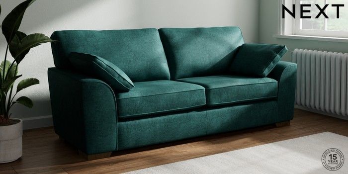 7.2.10 Stamford 3 Seater Sofa Plush Chenille Dark Teal Green Large Square Angle - Mid | Made Click here to use our website with more accessibility support, for example screen readers