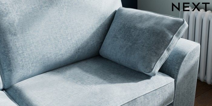 7.2.10 Stamford 3 Seater Sofa Plush Chenille Light Blue Large Square Angle - Brushed Brass | Made Click here to use our website with more accessibility support, for example screen readers