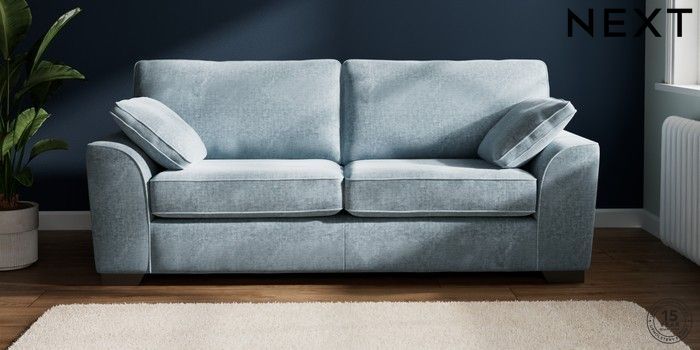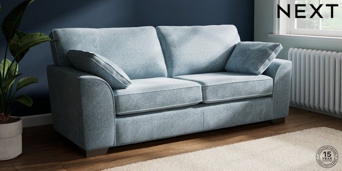 7.2.10 Stamford 3 Seater Sofa Plush Chenille Light Blue Large Square Angle - Gunmetal | Made Click here to use our website with more accessibility support, for example screen readers