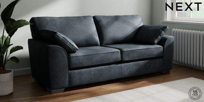 7.2.10 Stamford 3 Seater Sofa Plush Chenille Slate Blue Large Square Angle - Gunmetal | Made Click here to use our website with more accessibility support, for example screen readers