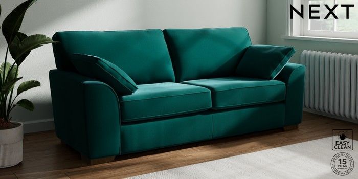7.2.10 Stamford 3 Seater Sofa Plush Velvet Easy Clean Juniper Green Large Square Angle - Mid | Made Click here to use our website with more accessibility support, for example screen readers