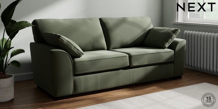7.2.10 Stamford 3 Seater Sofa Relaxed Linen Look Dark Green Large Square Angle - Dark | Made Click here to use our website with more accessibility support, for example screen readers