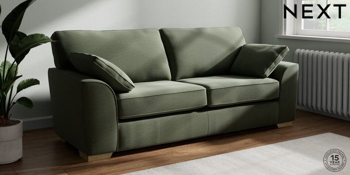7.2.10 Stamford 3 Seater Sofa Relaxed Linen Look Dark Green Large Square Angle - Light | Made Click here to use our website with more accessibility support, for example screen readers