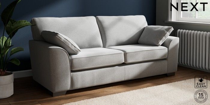 7.2.10 Stamford 3 Seater Sofa Tweedy Blend Easy Clean Light Silver Grey Large Square Angle - Gunmetal | Made Click here to use our website with more accessibility support, for example screen readers