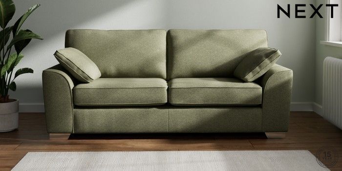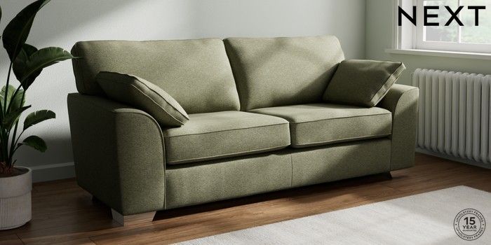 7.2.10 Stamford 3 Seater Sofa Tweedy Chenille Mid Moss Green Large Square Angle - Chrome Metal | Made Click here to use our website with more accessibility support, for example screen readers