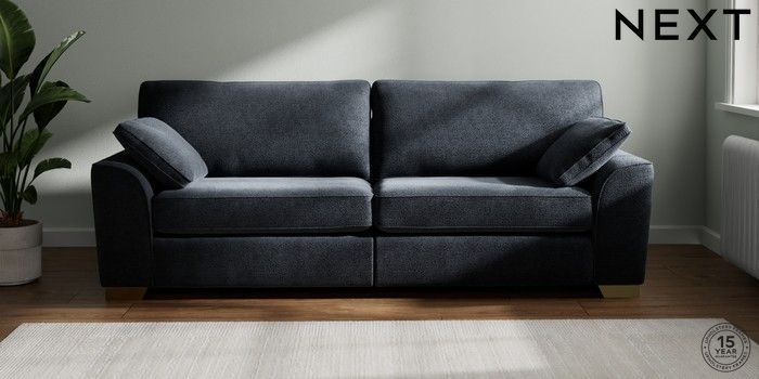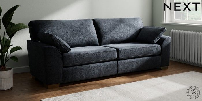7.2.10 Stamford 4 Seater Sofa Boucle Chenille Dark Slate Blue Large Square Angle - Brushed Brass | Made Click here to use our website with more accessibility support, for example screen readers