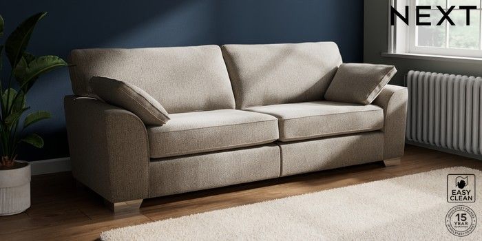 7.2.10 Stamford 4 Seater Sofa Chunky Boucle Easy Clean Dove Large Square Angle - Chrome Metal | Made Click here to use our website with more accessibility support, for example screen readers