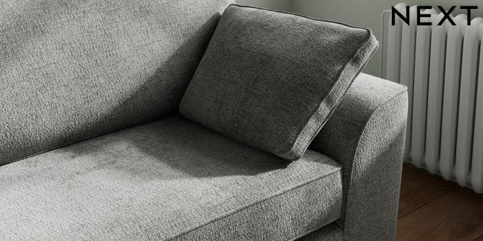 7.2.10 Stamford 4 Seater Sofa Chunky Chenille Dark Grey Large Square Angle - Chrome Metal | Made Click here to use our website with more accessibility support, for example screen readers