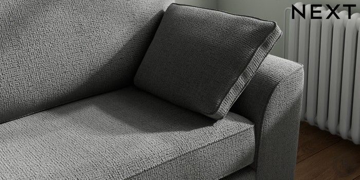 7.2.10 Stamford 4 Seater Sofa Chunky Texture Dark Grey Large Square Angle - Chrome Metal | Made Click here to use our website with more accessibility support, for example screen readers