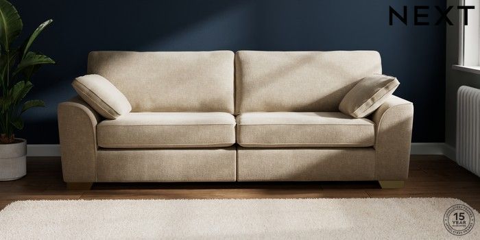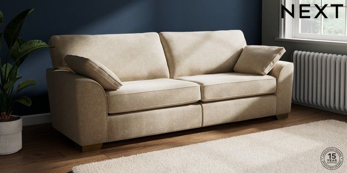7.2.10 Stamford 4 Seater Sofa Chunky Weave Cream Large Square Angle - Brushed Brass | Made Click here to use our website with more accessibility support, for example screen readers