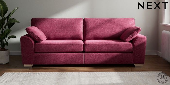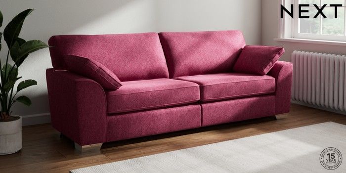 7.2.10 Stamford 4 Seater Sofa Cotswold Chenille Dark Raspberry Pink Large Square Angle - Chrome Metal | Made Click here to use our website with more accessibility support, for example screen readers
