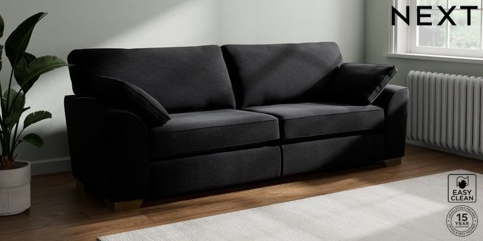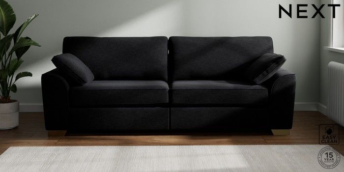 7.2.10 Stamford 4 Seater Sofa Fine Chenille Easy Clean Black Large Square Angle - Brushed Brass | Made Click here to use our website with more accessibility support, for example screen readers