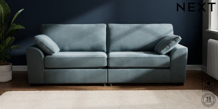 7.2.10 Stamford 4 Seater Sofa Fine Chenille Easy Clean Mid Blue Large Square Angle - Dark | Made Click here to use our website with more accessibility support, for example screen readers